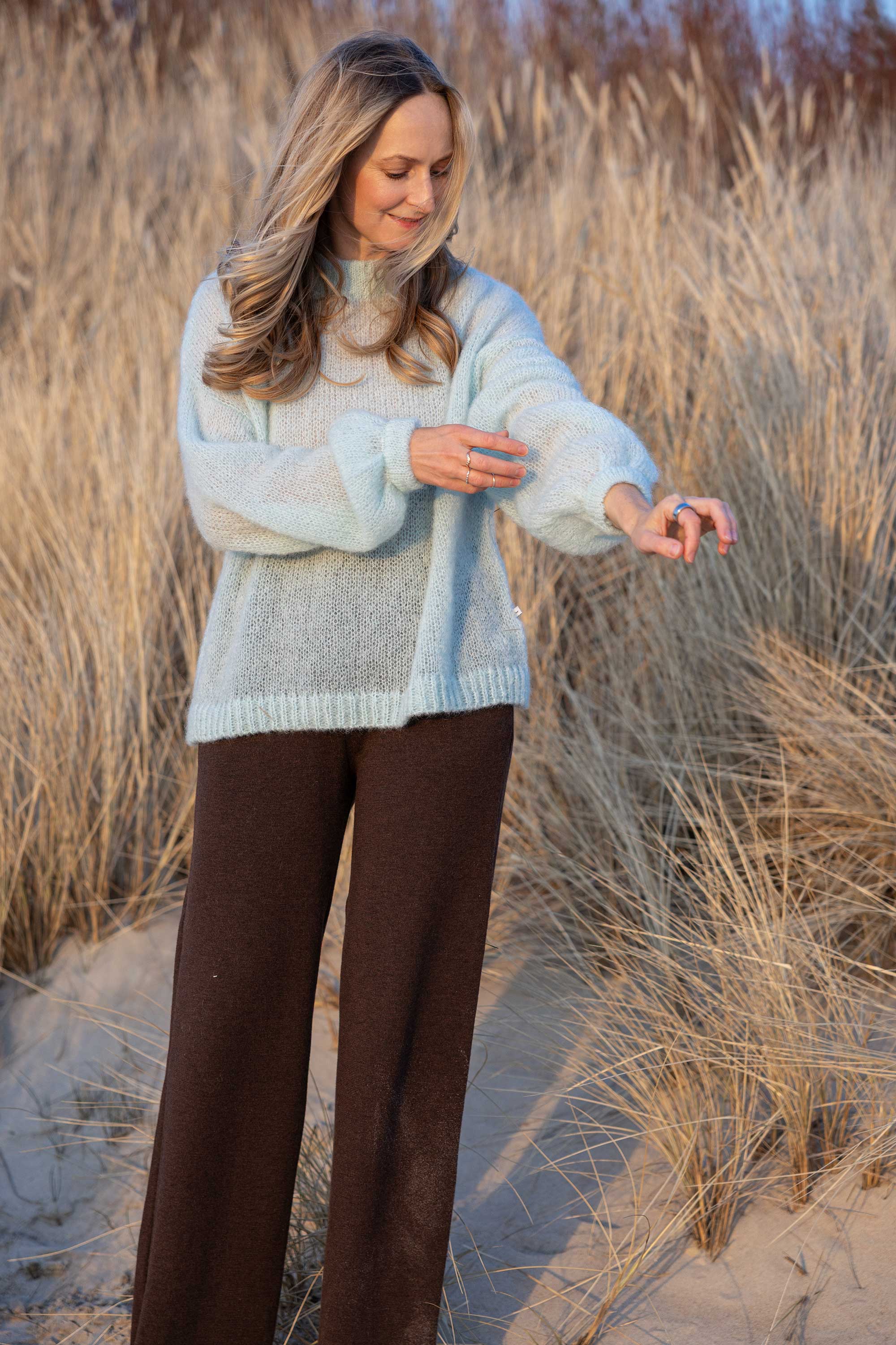 Our knits embody effortless elegance and cozy comfort, crafted to stand the test of time. At SALANIDA, we are mindful of the concerns of the environment and the maker as much as the needs of the customer. Our entire supply chain is located in Europe, all our garments are knitted in Lithuania, at the family owned factory just couple of hours away from our studio. We work with natural Italian materials - 100% merino wool, alpaca, mohair as well as linen, cotton and eco viscose. Inspired by our roots and living on the coast of the Baltics, we bring the sea's spirit into every stitch.