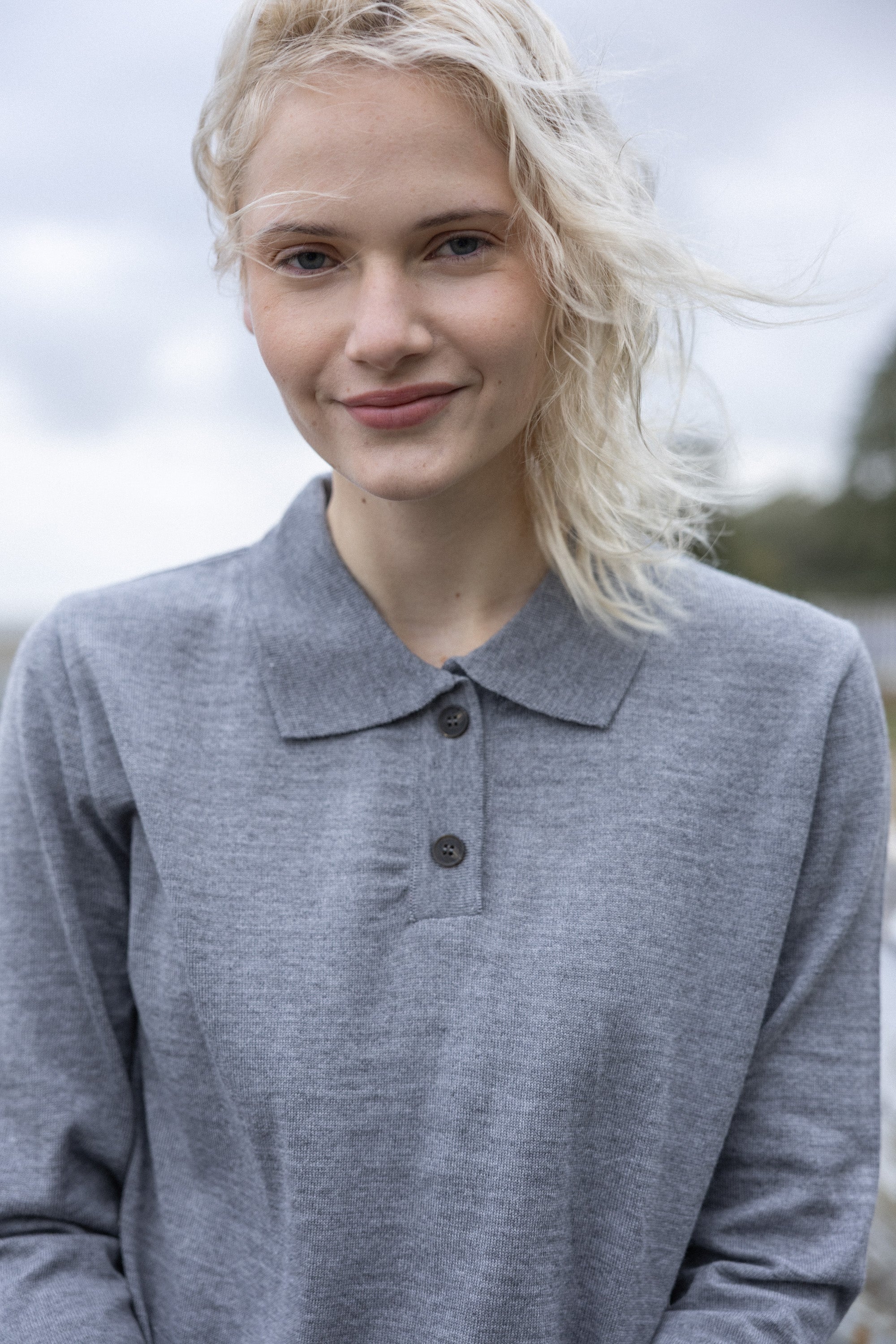 Galante polo top redefines modern elegance through simplicity. It’s designed in a relaxed fit with long sleeves and a classic polo collar.