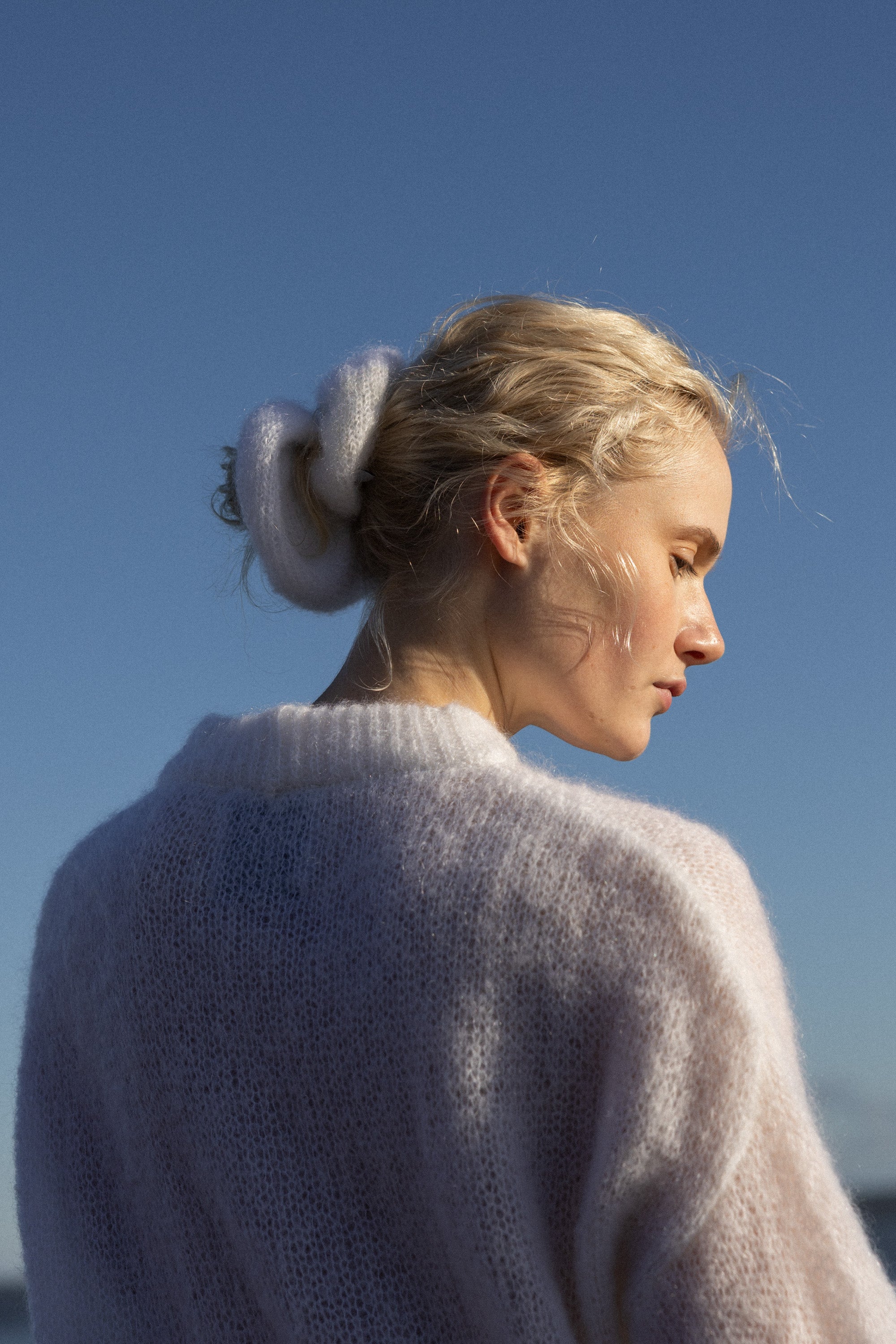 Fluffy, light, and oh-so-chic - Melody mohair scrunchie lifts your style straight to the clouds. Crafted from cloud-soft mohair, it turns any hairstyle into a moment of joy.