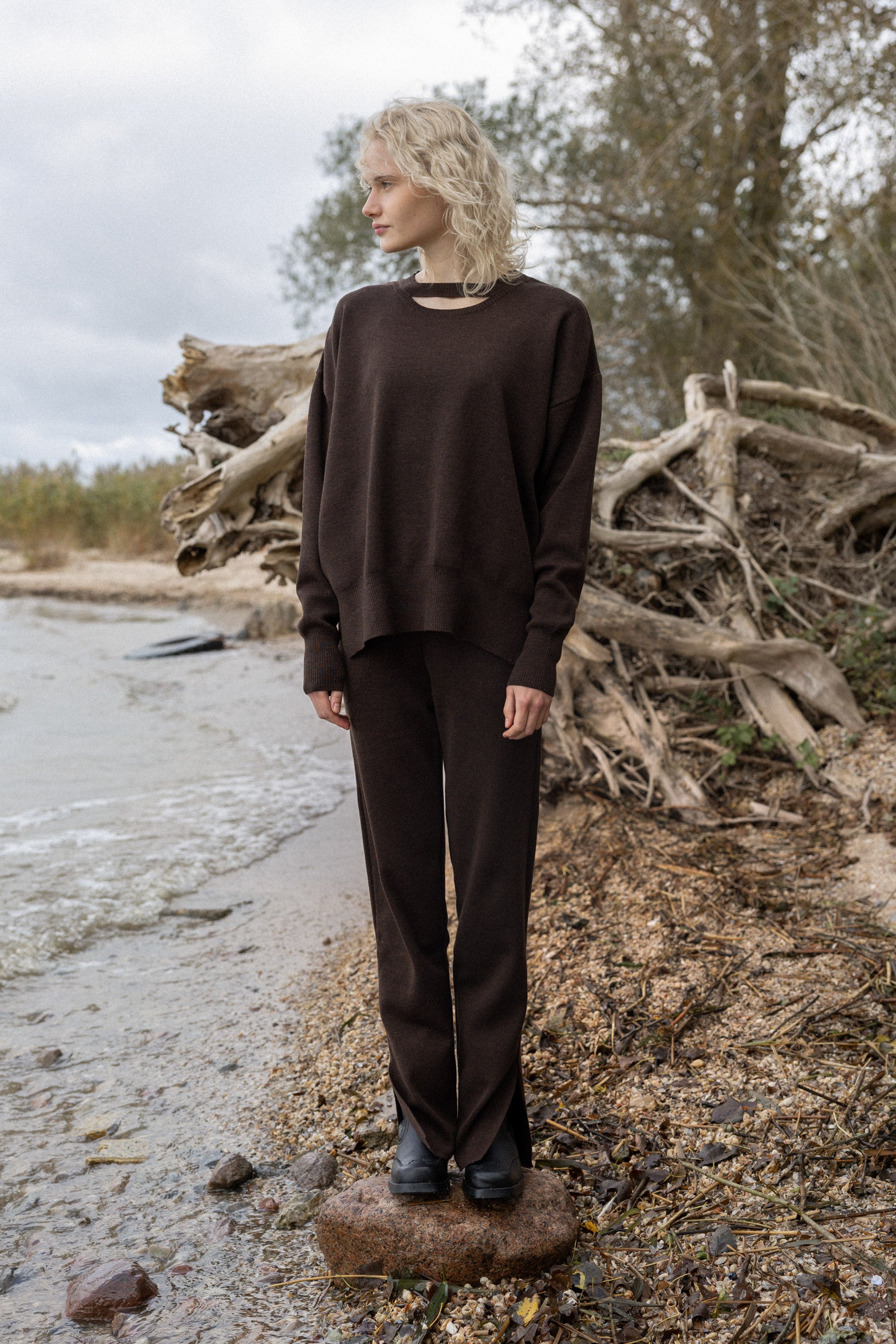 Knitted in 100% RWS-certified extra fine merino wool it's warm and comfy. Wear it together with coordinating Ora pants for the perfect at-home to outdoors look.