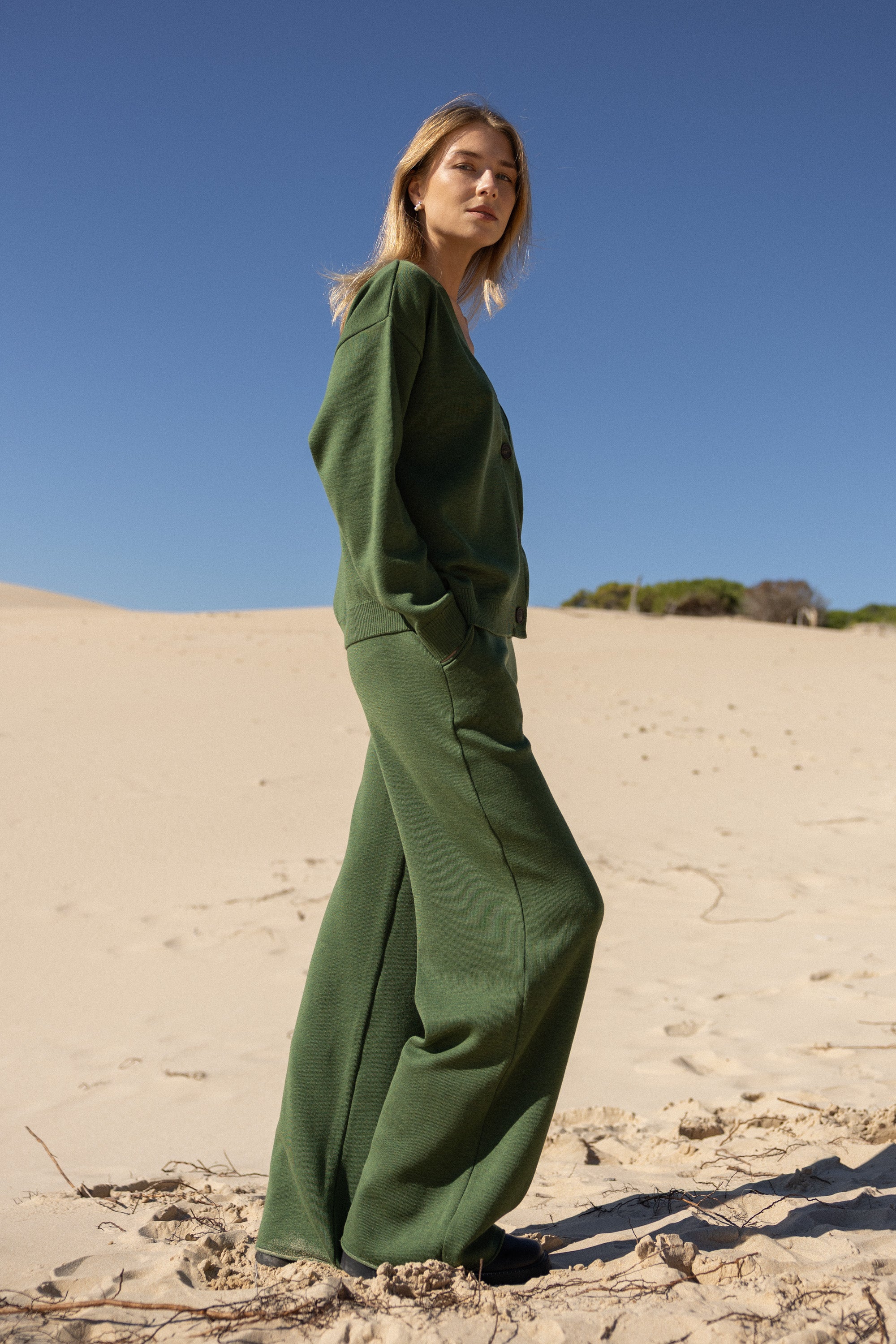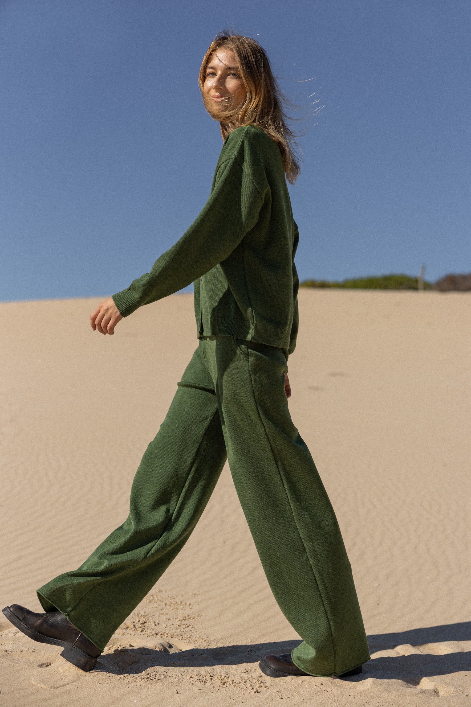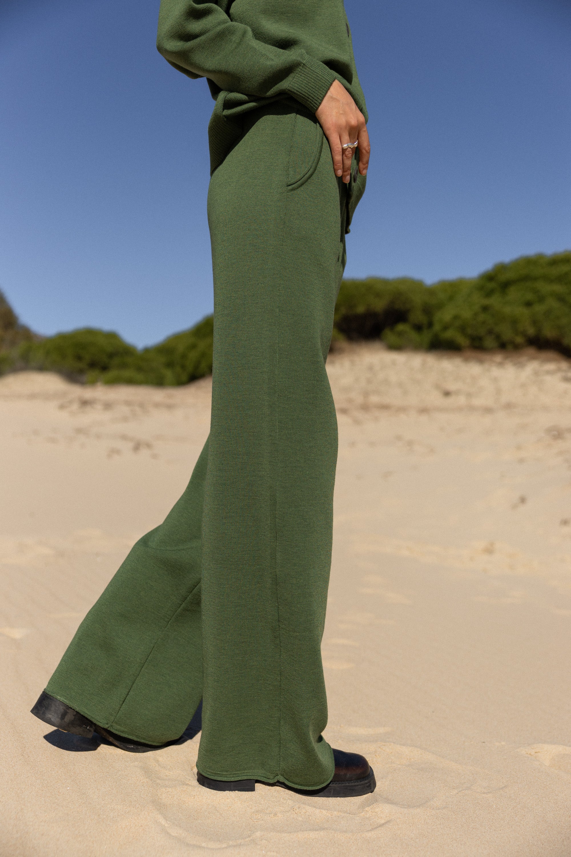 Bene 100% Merino Wide Pants Olive Green