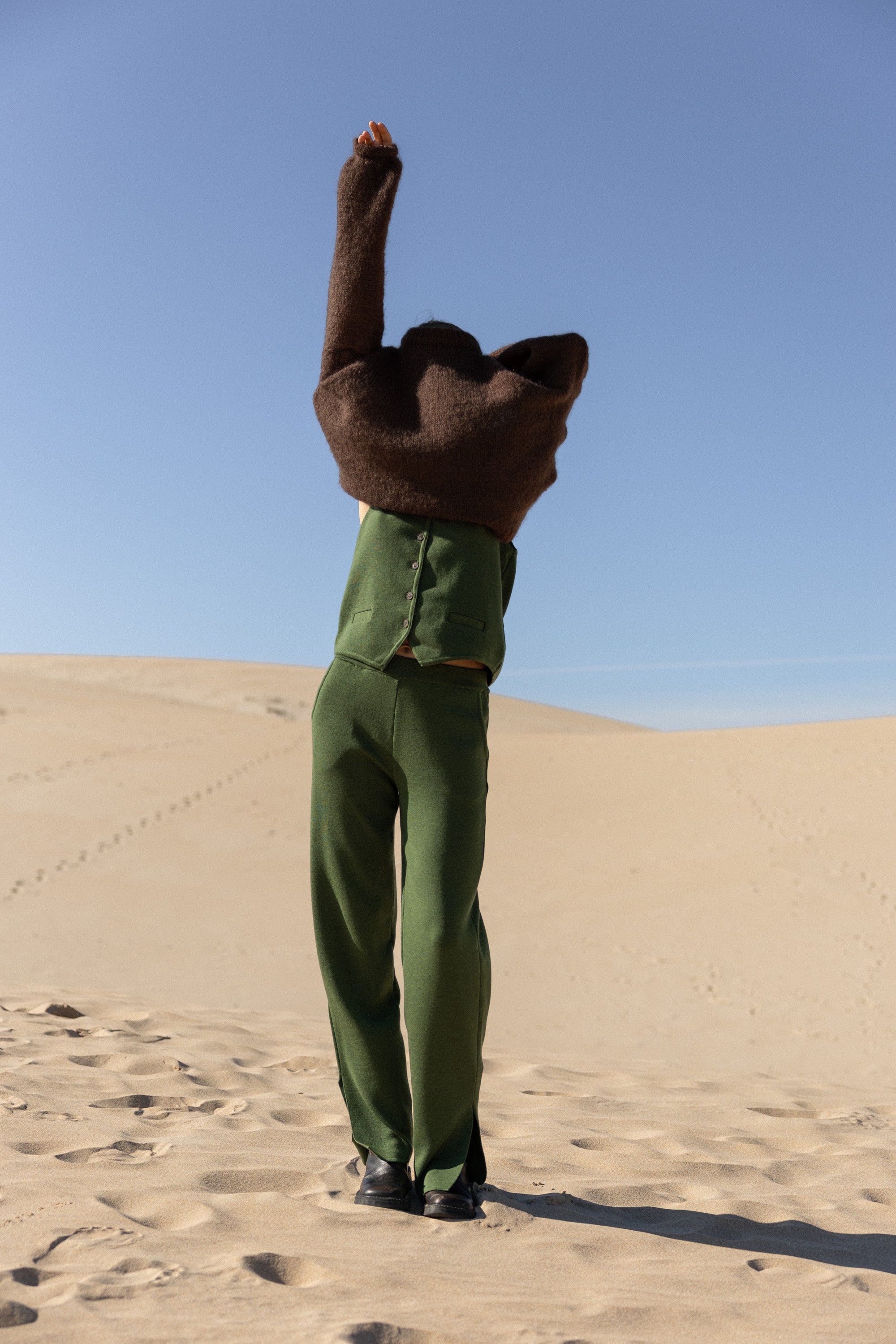 The Galante knitted waistcoat adds a stylish twist to classic tailoring. With a slightly relaxed fit, bio-resin buttoning at the front, and an adjustable belt at the back, it’s designed to be both chic and functional. Galante is sure to become an instant favorite, seamlessly slotting into the rest of your wardrobe.