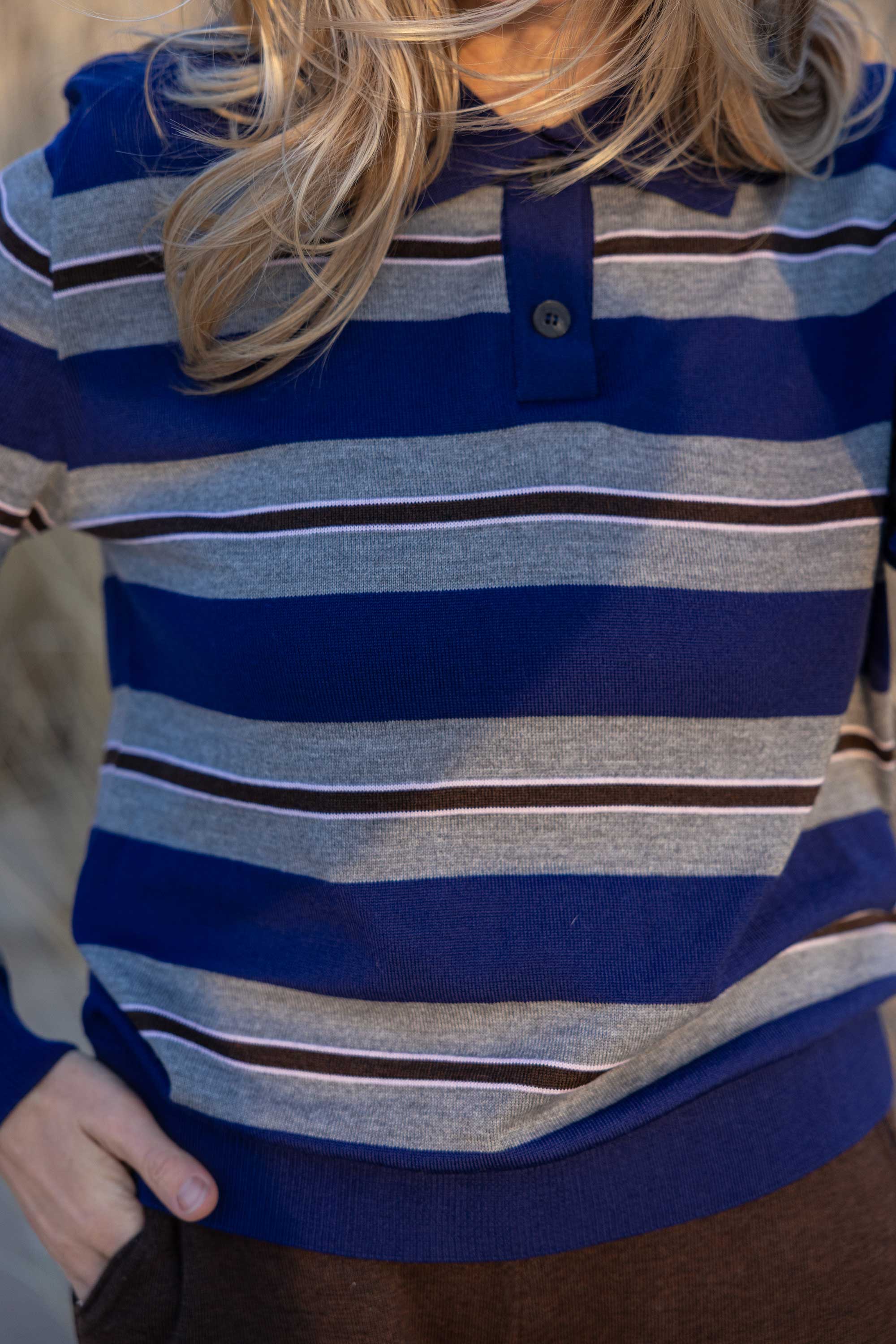 Galante 100% Merino Polo Top Navy Stripes